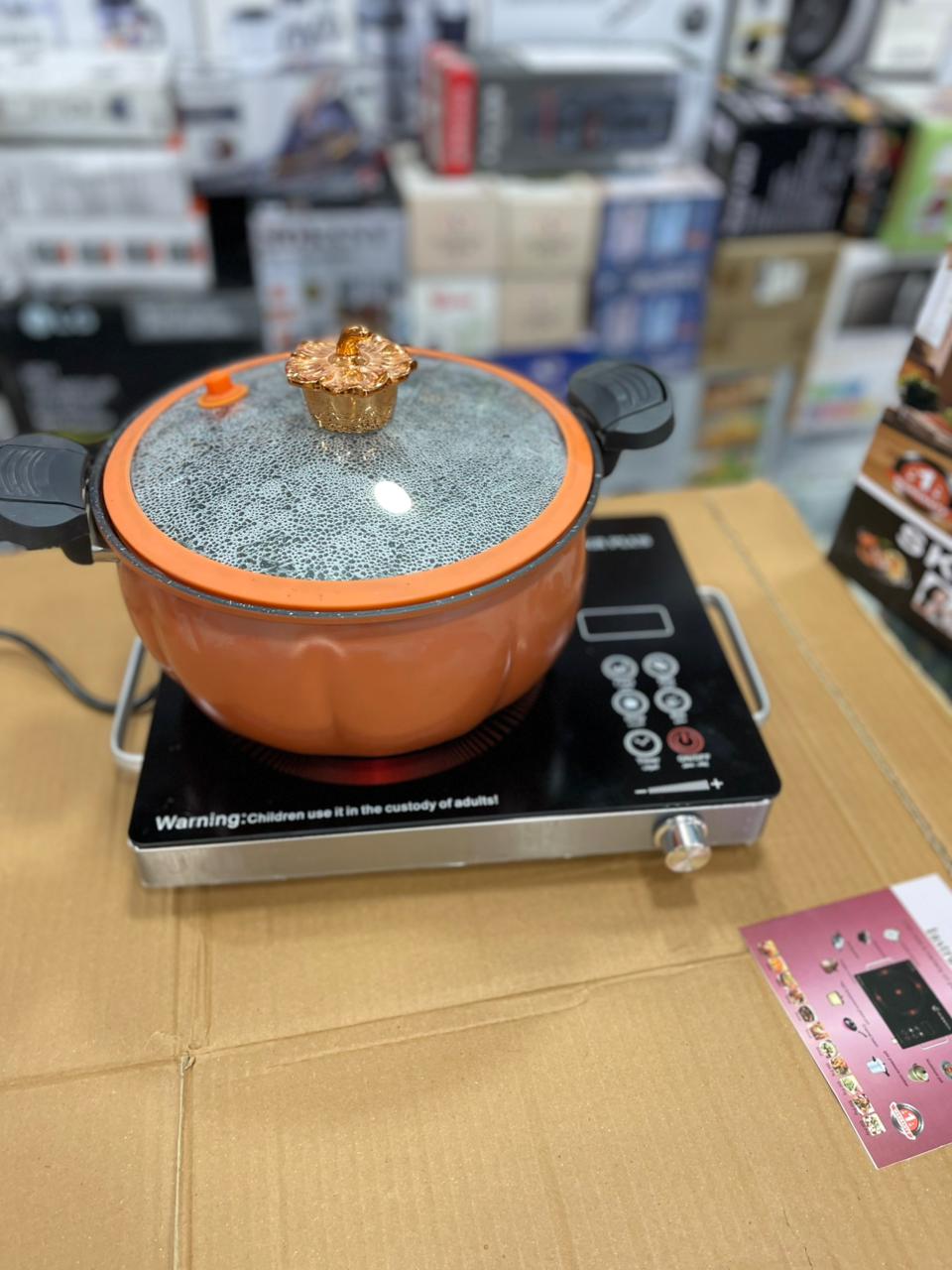 Unlike induction cookers that require specific magnetic cookware, the SV-14 uses infrared technology, making it compatible with almost any flat-bottomed pot or pan.